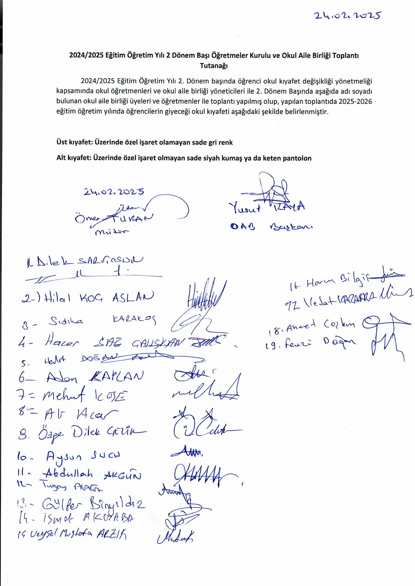 2025-2026 Eğitim-öğretim yılından itibaren okulumuzda uygulanacak kıyafet düzenlemesi kararı